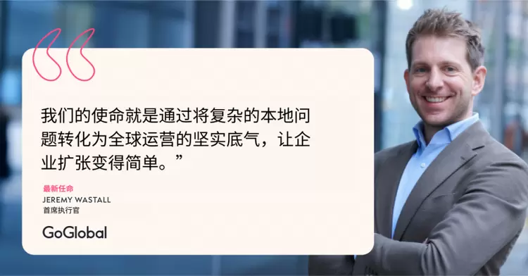 Jeremy Wastall此前担任公司首席营收官,在GoGlobal的发展历程中发挥了关键作用,主导开发了帮助客户快速、稳健地进入国际市场的解决方案。