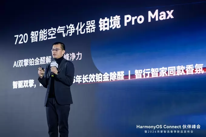 近日,720携手鸿蒙智选,在HarmonyOS Connect伙伴峰会暨2026鸿蒙智选春季新品发布会中正式推出全新旗舰产品——鸿蒙智选720智能空气净化器铂境Pro Max(后简称铂境ProMax)。依托鸿蒙智联生态赋能,融合智驱双擎、铂金溶醛解硅基分子筛等核心技术,搭配智行智家同款香氛功能,打破传统空净“单一净化”的局限,实现“净化+情绪舒缓”双重价值,为用户带来全方位、高品质的智慧呼吸新体验,重新定义高端智慧空净新标杆。