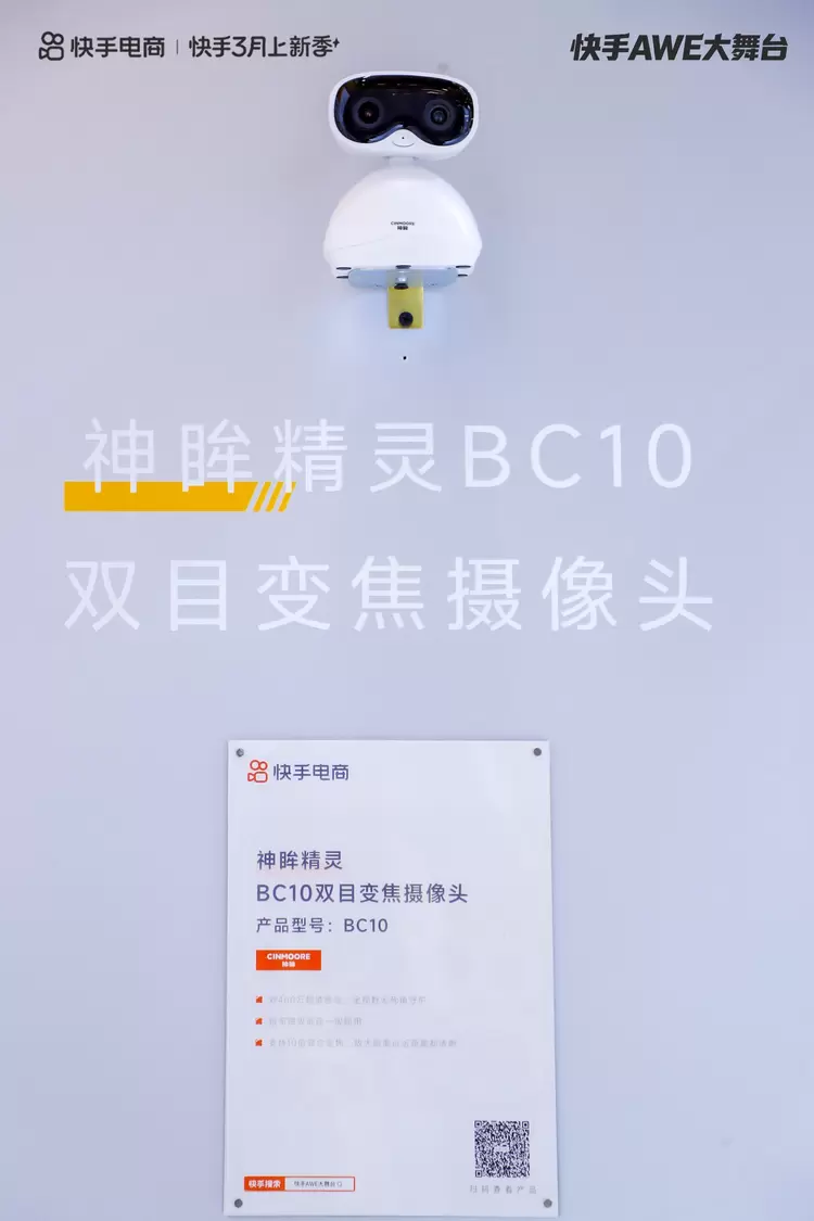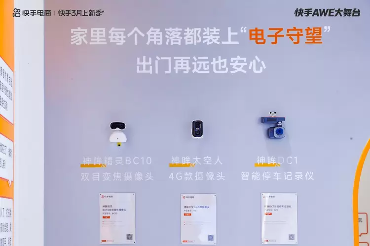 在众多品牌中,智能安防领域新锐神眸携手快手电商惊艳亮相,以"家里每个角落都装上'电子守望',出门再远也安心"为核心主张,重磅发布全新BC10双目变焦摄像头,并同步展出BC4 4G摄像头与DC1智能停车记录仪,三款产品联袂出击,共同构筑覆盖室内、室外、车载的全场景智能守望体系。
