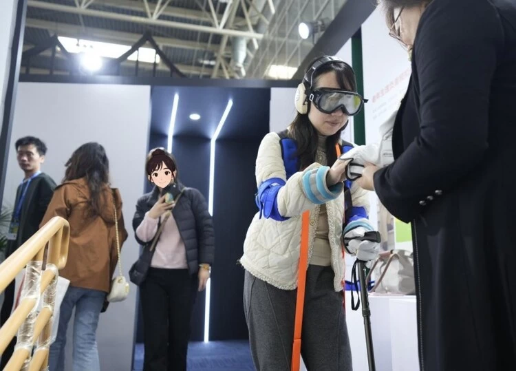 现场还设置了高龄长者体验装备区。参观者戴上设备后,可切换至“长辈视角”,直观感受视线模糊、行动迟缓带来的不便,从而深入理解全场景适老设计的必要性。