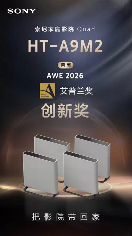 索尼HT-A9M2斩获AWE2026艾普兰创新奖,以技术革新引领沉浸式家庭影院产业升级