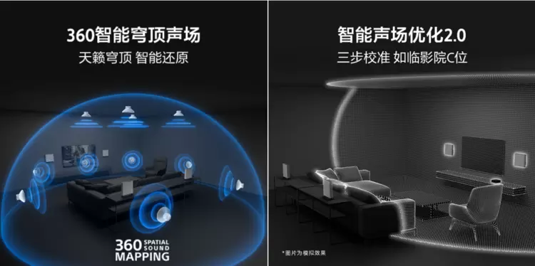 其一,核心音频技术迭代,打造影院级环绕声场。HT-A9M2搭载升级后的360智能穹顶声场2.0技术,通过先进智能算法生成多个“幻象扬声器”,打破传统扬声器摆位局限,构建广阔环绕声场,让用户在房间多数位置都能体验参考级环绕声效果,实现优质的全域沉浸聆听体验。同时,搭配智能声场优化2.0功能,可自动侦测房间布局和扬声器位置、分析声学特性,轻松完成三步精准校准,无需专业调试即可获得影院C位级音效,有效解决传统家庭影院声场校准复杂、受空间限制的痛点。