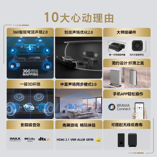 此外,HT-A9M2亦具备出色的广泛兼容性。即便搭配其他品牌电视,其核心音频技术仍可提供清晰通透、层次丰富的出众音质,真正实现了“适配无边界,体验不打折”,满足不同家庭用户的多元化需求。