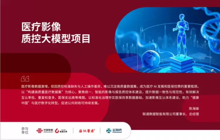 随着医疗影像数据激增,因质控标准缺失与人工操作差异,难以沉淀高质量数据集,导致医疗领域频频出现互认率低、重复检查多、医保支出高等难题。针对这些难题,联通数智联合行业伙伴,牵头打造了集数据、模型和应用一体化的智能影像质检平台。该平台依托影像云技术,汇聚多机构数据资源,通过多模态大模型实现图像质量评估与报告文本的深度语义分析,构建了可信、规范、智能的医疗影像与报告质控体系,促进医疗人工智能健康有序发展。
