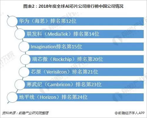 图表2:2018年度全球AI芯片公司排行榜中国公司情况