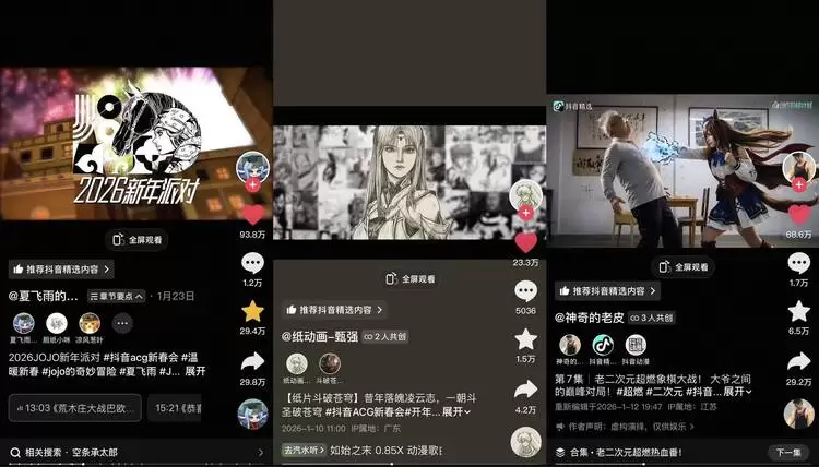 从“抓马大战”的创意广度,到ACG拜年晚会的垂直深度——抖音正在证明自己不仅能覆盖多元题材,更能深耕单一赛道,打造出ACG爱好者们的年度盛事。