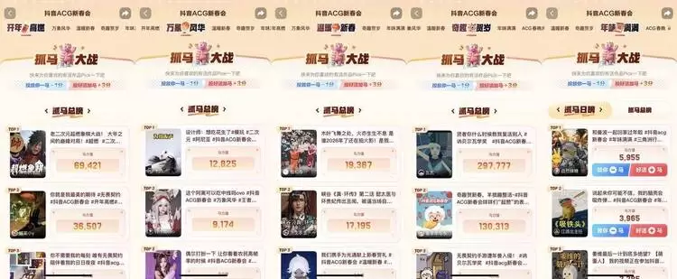 四、重塑格局:从内容盛宴到行业新起跑线从行业视角出发,首届抖音ACG新春会为ACG内容生态的竞争划下了一道新的起跑线。
