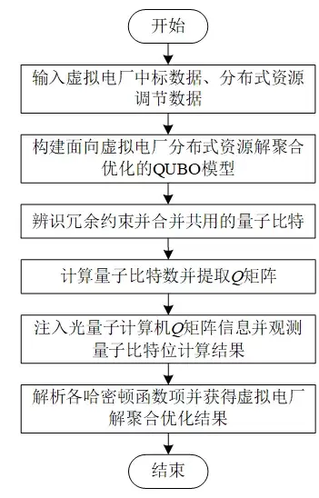 图1 基于光量子计算机的虚拟电厂分布式资源解聚合优化流程图