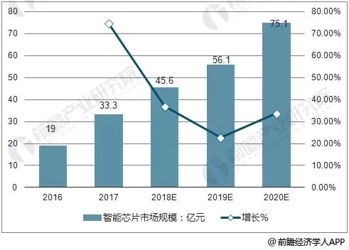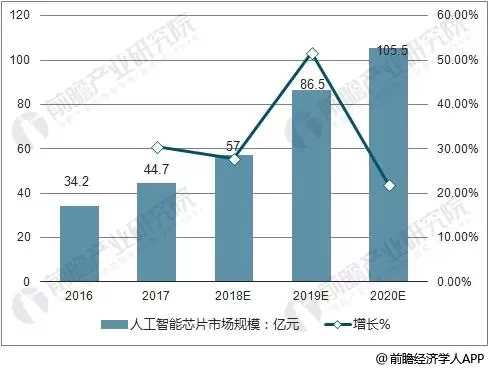 据前瞻产业研究院发布的《全球人工智能芯片行业市场前瞻与投资战略规划分析报告》数据显示,2017年全球人工智能芯片市场规模达到44.7亿美金,随着包括谷歌、脸书、微软、亚马逊以及百度在内的巨头相继入局,预计到2018年将达到57亿美金,2020年有望突破百亿大关,增长迅猛,发展空间巨大。