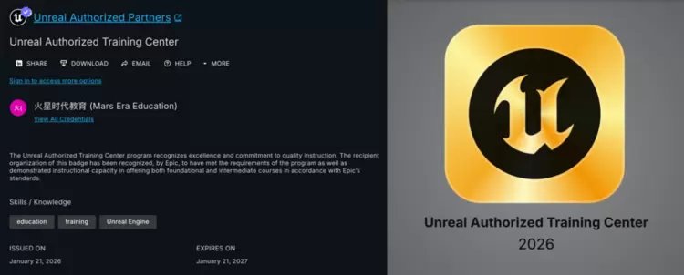 火星时代教育虚幻引擎授权培训中心认证(金)