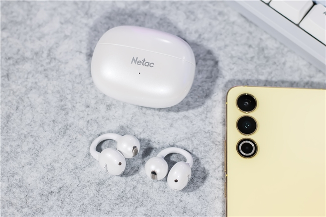 当翻开充电仓盖子后无线耳机自动连接手机,无线耳机以磁吸方式固定,磁吸力度足哪怕翻转也不会从充电仓中脱离掉落,朗科WTS1无线耳机采用耳夹式结构设计,与传统的半入耳式或入耳式耳机的结构有着明显区别,表面具有光滑圆润的烤漆质感。