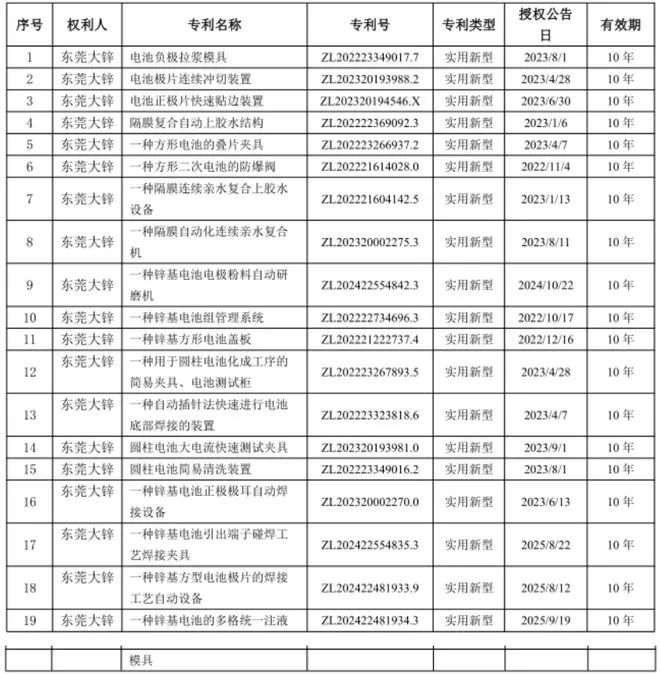 资产包中包括19项技术专利