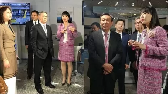 左图:南南合作金融中心董事长、中国银监会原副主席蔡鄂生巡视依图展台