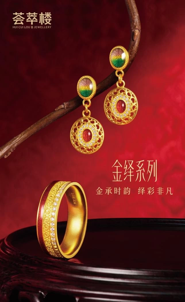 在此背景下,荟萃楼珠宝围绕不同圈层消费需求迭代产品,实现全周期、全场景覆盖。依托古法黄金赛道高速增长的行业趋势,2021—2022年推出至美东方系列、禧福荟萃系列,以非遗工艺与东方美学契合国潮消费热潮,夯实品牌传统文化底色。2023年推出金致系列(5G黄金)、漫天星辰系列(18K金),顺应Z世代悦己消费占比持续提升的市场特征。2025年推出轻奢黄金金绎系列,以多种配石和珐琅镶嵌为特点,更好捕捉女性群体的多样化心智需求。