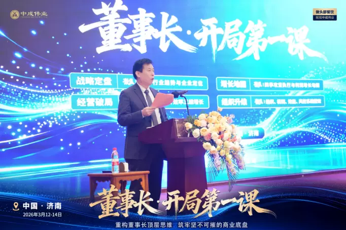 2026年3月12日至14日,由中成伟业酒店管理有限公司主办的"董事长·开局第一课"在济南舜和国际酒店盛大举行。作为餐饮行业年度开年盛事,本次课程汇聚十余位行业领军企业家与中成伟业实战专家,以"战略定盘、增长生命力、经营破局、组织升维"四大篇章为核心,为数百位餐饮董事长呈现了一场高维度的思想盛宴。