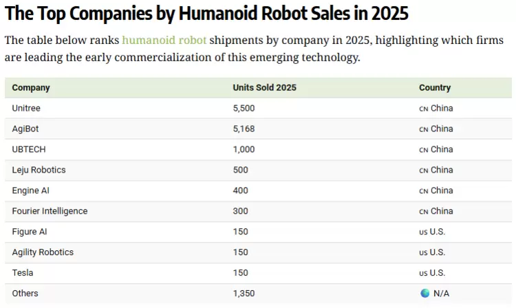 宇树科技人形机器人全球出货量第一,中国企业表现突出