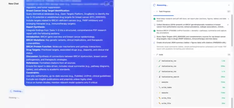 内置1900 +科研专属工具及技能,覆盖数据检索、公式计算、图表生成、文献分析等多类科研操作,满足不同科研环节的工具需求;