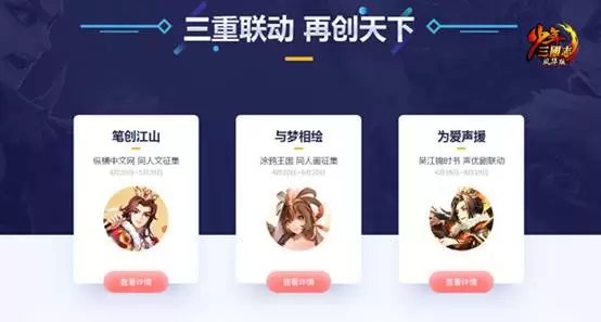 此外,“创·三国计划”还包括了小说、同人绘画、声优剧等三大模块,涵盖世界观塑造、同人文化、舞台话剧等多项领域。届时,玩家可通过纵横中文网原创文章征集、涂鸦王国绘画大赛、吴江锦时书“襄樊之战”三重平台联动活动,参与到“创·三国计划”中,与史航一起再塑三国世界。
