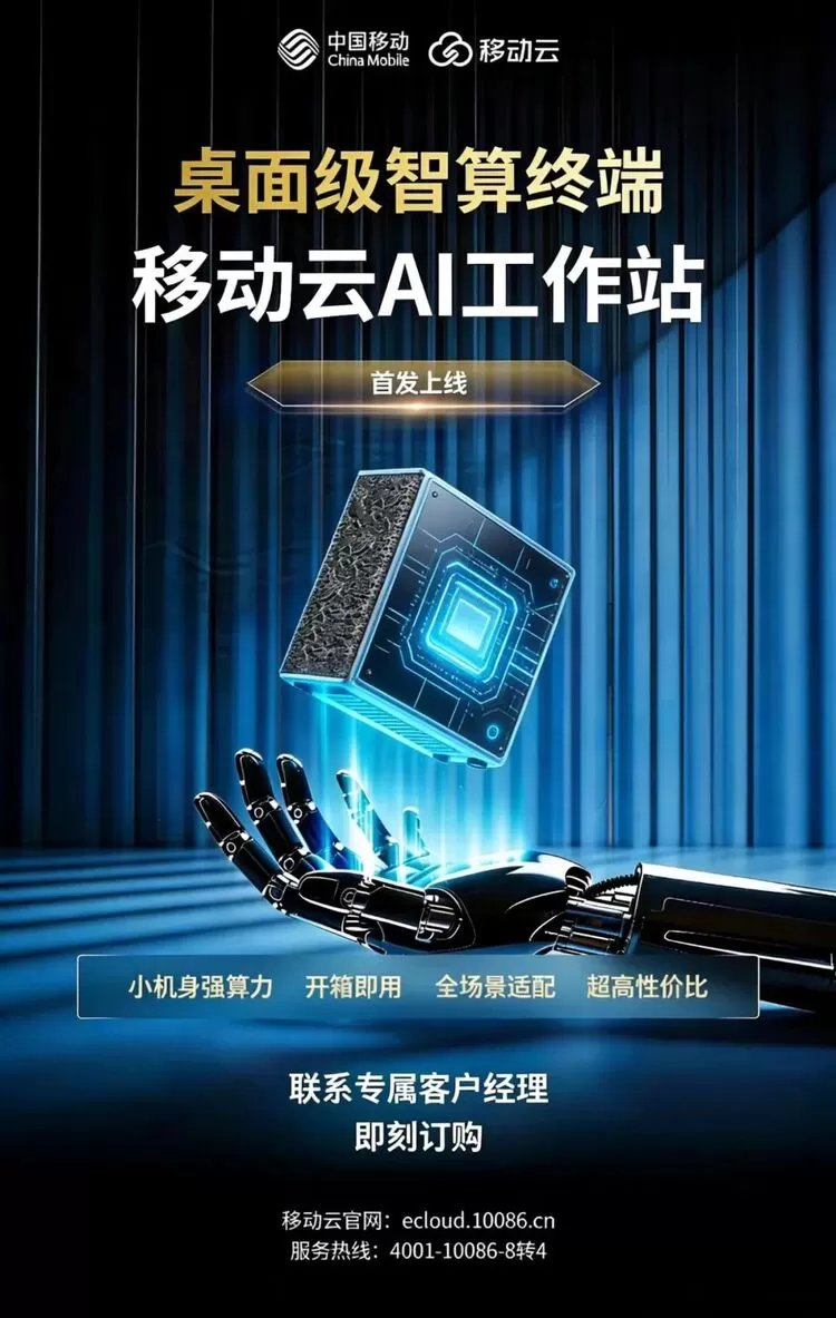 3月19日,移动云 AI 工作站(智惠版)重磅上线,以“算力+平台+应用”软硬一体全栈方案,深度集成OpenClaw,一站式破解部署、成本、安全等问题,让用户安全“养虾”无顾虑,是政企事业单位、中小微企业、OPC都能用的桌面级智算终端!