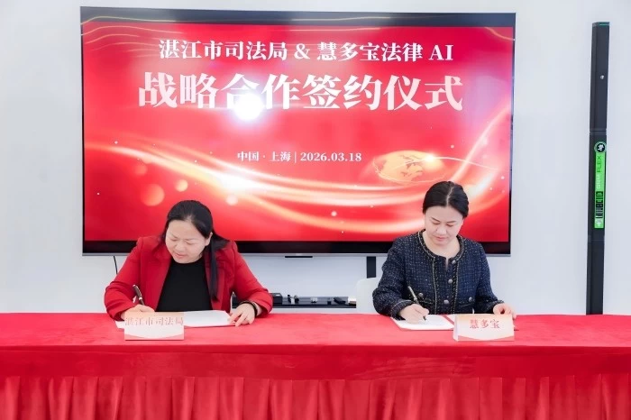 在全面贯彻落实党的二十大精神、深入推进“数字法治”建设、加快推进司法行政工作现代化的关键时期,为紧扣全面依法治国战略部署、践行数字中国建设总体要求,推动法治建设与数字科技深度融合,湛江市司法局与国内领先的法律人工智能企业慧多宝法律AI于2026年3月18日在上海张江科学之门T1模力社区正式签署战略合作协议,并成功举办智能体技术分享会。湛江市司法局、湛江市律师协会、湛江国际仲裁委、湛江市博融民商事调解中心、湛江开放大学等一行37位领导与司法同仁共同出席签约仪式,见证这一具有里程碑意义的合作启航。此次盛会不仅彰显了湛江在法律科技融合创新方面的积极姿态,也为湛江建设“AI之城”注入了强劲的法治动能。