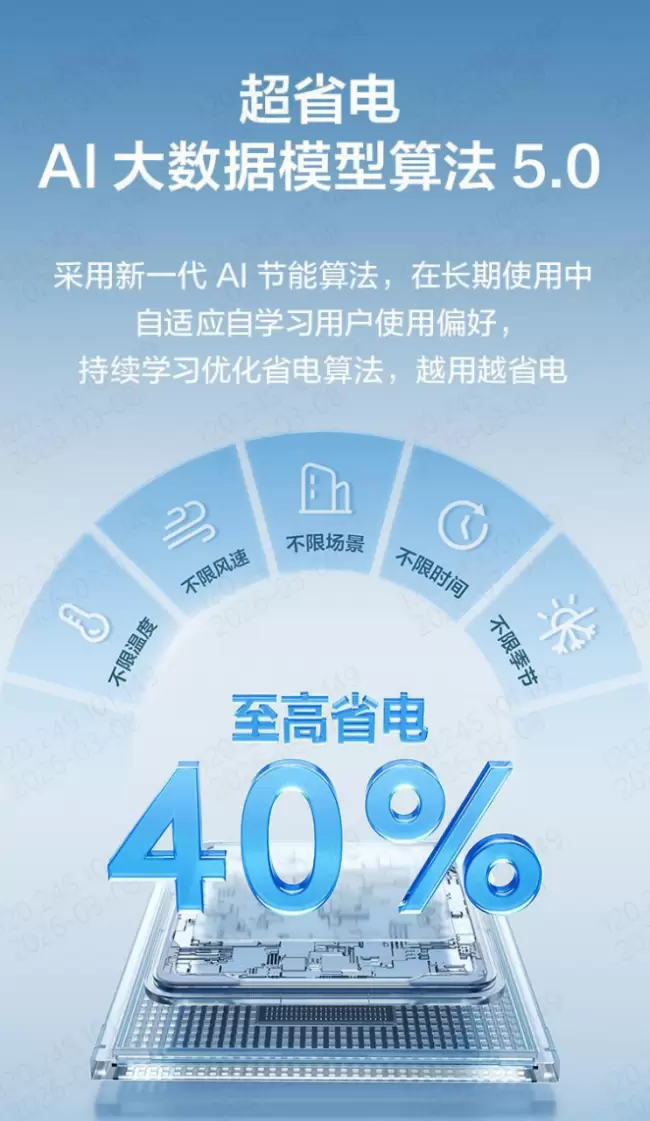 在节能环保方面,TCL小蓝翼·全域风ProAI健康舒适空调搭载超省电AI大数据模型算法5.0,采用新一代AI节能算法,在长期使用中自适应自学习用户使用偏好,持续学习优化省电算法,越用越省电,至高省电40%。