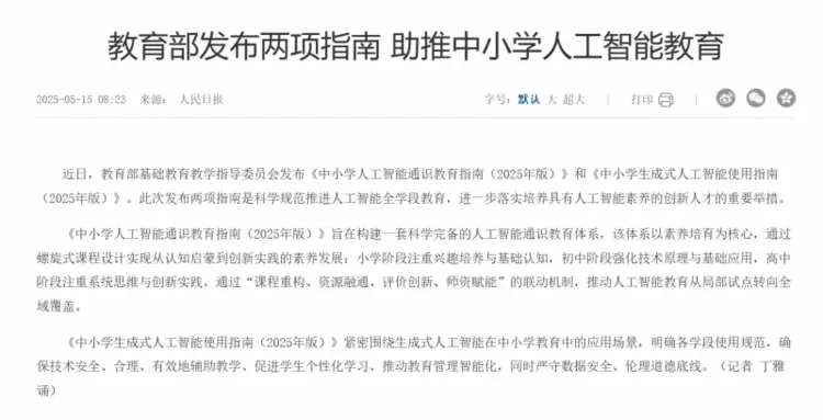 在体育硬指标落地、教育减负提质成为核心诉求的背景下,人工智能成为破解“健康与升学平衡”难题的最优解。2026年,教育部正式印发《中小学人工智能通识教育指南》,明确人工智能通识教育覆盖全学段,“十五五”规划纲要进一步强调深化教育数字化战略,推动人工智能与教育教学深度融合,着力培养具备AI素养的创新型人才。