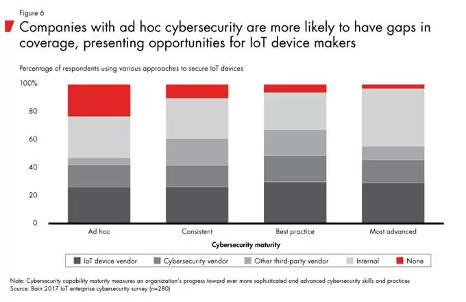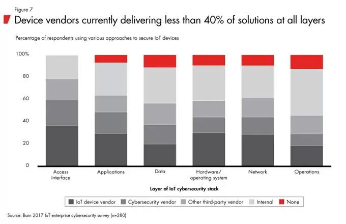 贝恩还研究了公司如何通过层层部署安全解决方案,并为物联网设备供应商在每层找到了充足的机会。