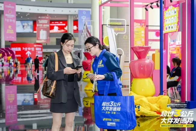 展会期间,德邦展位将特别设置互动抽奖环节,观众在现场扫码留下联系方式后,即可参与即时开奖,奖品包括实用的发货优惠券和精心挑选的周边礼品。与此同时,主办方打卡礼品处也摆放了德邦台卡,客户完成官方打卡任务后,可自愿扫码领取德邦大蓝袋包装的礼品。通过“咨询—互动—领奖”的一站式体验,在活跃现场氛围的同时,也让有物流需求的客户便捷了解相关服务信息。