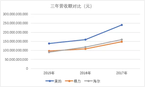 下面是近三年随着智能家居市场的逐步成熟,这三家企业的营收变化情况: