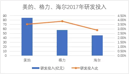 随着物联网市场趋向成熟,智能家电取代普通家电的进程也在逐步加快。家电企业能否在这次市场的更新换代中取得好成绩,研发投入是不可忽略的重要因素。美的研发投入额是三家中最多的,而格力的研发投入比则最高。