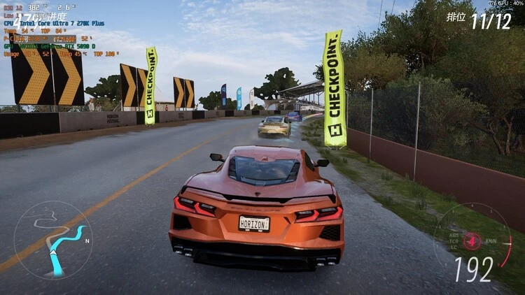 《极限竞速:地平线5》,最低画质,1080p分辨率,平均帧率分别为348fps和339fps。相对于更吃CPU性能的电竞游戏来说,3A游戏对于处理器性能的敏感度就没有那么高了,所以同等内存、显卡配置下,酷睿Ultra 7 270K Plus和酷睿Ultra 5 250K Plus平均帧率相差不算太大,但相对于前代同级别产品来说,提升幅度分别达到了34%和54%。