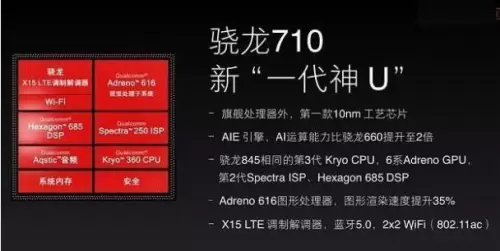 更重要的是诺基亚X7选择搭载次旗舰标配的骁龙710,作为高通骁龙7系列首发芯片,骁龙710采用与旗舰8系列平台相同的10nm制程,具备单颗多核AI引擎及都中神经网络处理功能,以及GPU架构改良拥有更为迅速的运算能力以及更为节省的耗电量。搭载骁龙710,无疑将使得诺基亚X7在用户操作体验方面获得巨大的提升。