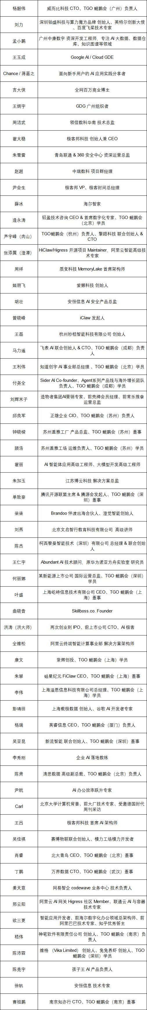 讲师名单(排名不分先后)