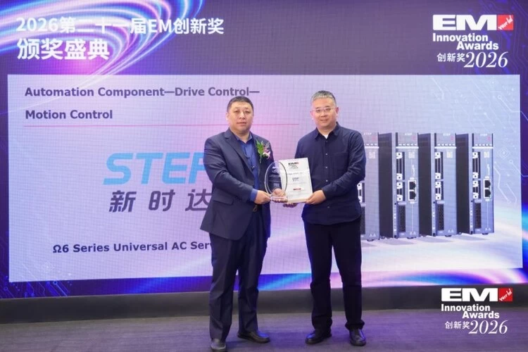 展会期间,其自主研发的Ω6-C系列通用型交流伺服凭借3.2kHz速度环响应带宽、微米级总线通信、先进控制算法及32bit超高分辨率编码器,斩获电子制造领域权威奖项——EM创新奖。该产品已规模化应用于贴片机、固晶机、点胶机等高精度、高稳定性核心装备,为设备实现高产能与高良率的协同提升提供关键支撑。