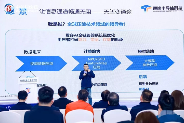 探路者集团副总裁、上海通途半导体科技CEO王洪剑进行了《AI全栈数据压缩——技术到芯片,万亿级市场》主题分享,系统阐释了通途对大模型全栈数据的压缩方案。“未来大模型的产业格局,将以‘端-边-云’高效协同为核心,向个人设备、智能空间、智能车载、工业互联网、具身机器人、AR/VR可穿戴设备、泛在物联网以及精准医疗八大终端领域深度布局,形成‘本地智能+智能体’的全场景落地。通途的AI全栈数据压缩技术,打破大模型在算力、存储和带宽上的瓶颈,成为AI大模型高效运行的基础,更是大模型从云端走向端侧,实现全场景落地的前提。探路者将与产业链上下游伙伴携手合作,以全栈压缩为核心,共同推动AI大模型产业的高质量发展,开启全场景智能的新时代!”