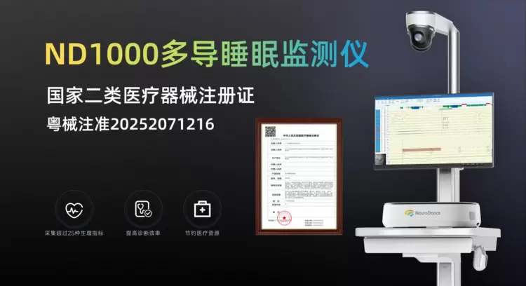 另一款入选的ND1000多导睡眠监测仪,已获得国家二类医疗器械注册证,可同步采集脑电、眼电、心电、肌电、呼吸气流、呼吸压力、体位、心率、脉搏、血氧等超过25种关键生理指标,提升诊断效率、节约医疗资源。