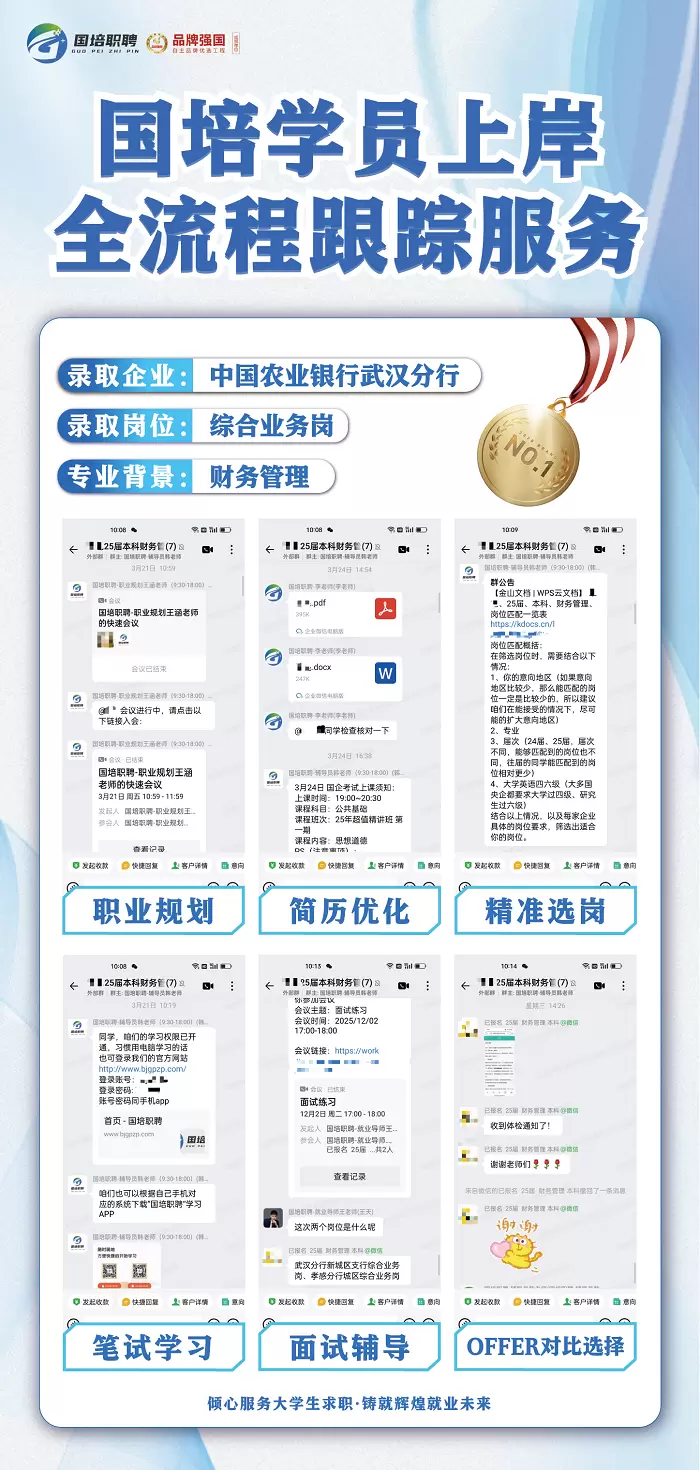 从最初的职业方向定位,到备考期间的进度跟踪与问题答疑,再到网申阶段的简历优化与岗位匹配建议,我们的老师全程在线,用专业与耐心为学员扫清上岸障碍。正如学员所说:“从备考到签约,老师的陪伴从未缺席,每一个关键节点都有细致的指导,这份安心让我能够全身心投入备考。”