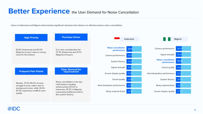 非洲、南亚等传音核心布局的新兴市场,普遍存在环境嘈杂、非稳态噪声密集的特点,摩托车引擎轰鸣、集市人流喧闹、民用发电机运转等特殊背景噪声,对手机通话清晰度、语音交互流畅度造成显著影响。IDC最新调研数据显示,尼日利亚、印度尼西亚等重点市场,超69%的消费者将手机降噪能力、语音通话清晰度列为购机核心考量指标,而当地蓝牙耳机普及率偏低,手机原生声学技术成为提升用户音频体验的核心突破口。