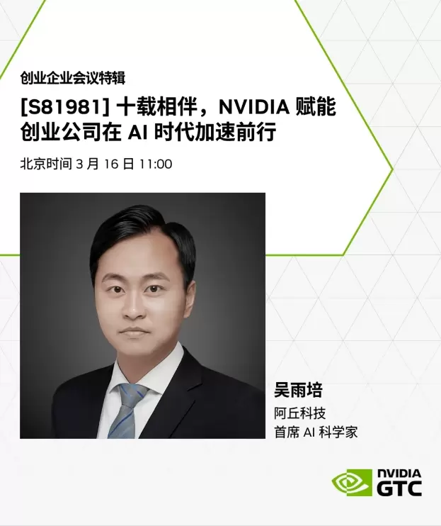 锁定 GTC26 针对中国创业生态的演讲特辑除了线下的互动,阿丘科技还作为NVIDIA 初创加速计划 会员代表,亮相 GTC 大会的线上讲演。阿丘科技首席 AI 科学家吴雨培分享了基于 Vision Agent 视觉平台的全厂AI解决方案,与全球开发者在线交流。