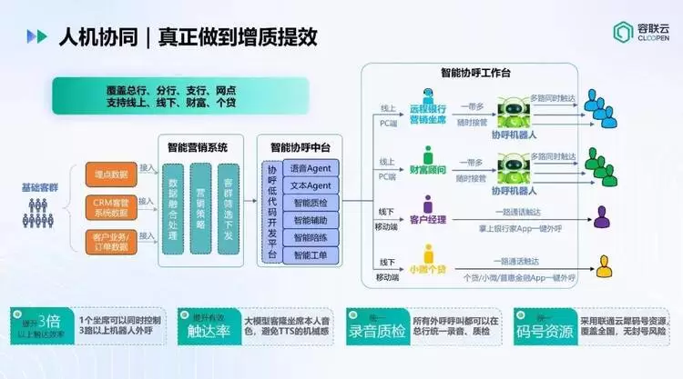 围绕这一方向,容联云提出以人机协同为核心的落地路径,通过Agent形态,将大模型能力嵌入客服、营销与运营等一线场景,而非简单替代人工。