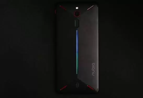 既然是一款电竞手机,那么自然在外观设计方面与众不同。红魔电竞游戏手机采用向量美学设计,菱角造型,厚6.85mm、重185g。正面采用18:9全面屏 ,机身右侧还配备了游戏模式按键。且红魔电竞游戏手机与一般手机最不同的是背面采用了独特的1680万色幻彩RGB灯带,可以根据不同的游戏节奏进行闪烁。配合上菱形的指纹识别模块、闪光灯和摄像头,整机看上去就十分具有游戏元素。红魔电竞游戏手机拥有曜石黑、烈焰红两种配色,能吸引不同的用户。