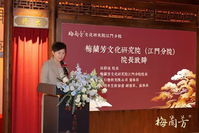 梅兰芳文化研究院江门分院伍彩仪院长在致辞中表示,研究院已构建起"AI内容生成—数字传播—产业转化"全链路发展模式,借助AI技术让文化内容传播效率提升300%,同时通过大数据分析实现产品设计与用户偏好的精准匹配,真正实现"文化赋能产业、科技激活文化"。