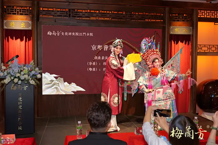 仪式上,相关领导共同为梅兰芳文化研究院(江门分院)揭牌,正式宣告梅兰芳文化研究与传播体系在粤港澳大湾区落地生根,为侨乡文化建设注入全新活力。