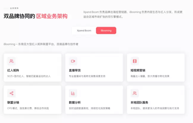 依托自研 CloutEngine 智能系统与全球人货价值智算匹配矩阵,Xpand实现内容创作、达人匹配、流量转化与订单履约全链路数字化协同。通过并购TikTok 印尼头部 KOL 分销服务商iBooming,公司进一步打通东南亚本地达人资源与零售渠道。同时,Xpand在东南亚搭建本土化仓储物流体系,设立 5个本地化运营办公室,本地达人团队占比超70%,为品牌提供深度本土化运营支撑。
