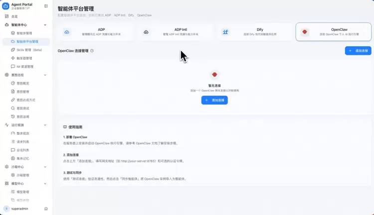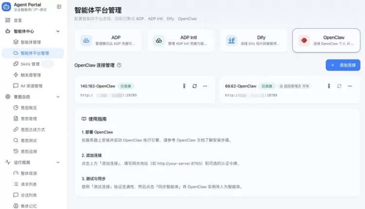 图:Portal为不同平台开发的智能体和龙虾,提供统一的管理视图