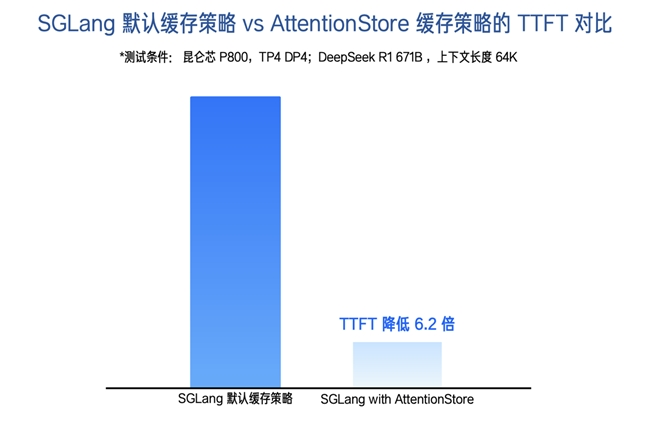 百度智能云旗下百度百舸团队近日推出了一套自主研发的KV Cache系统 —— AttentionStore,并基于昆仑芯 P800 在DeepSeek模型上完成系统验证:在8K+长上下文场景中,TTFT实现了2至5倍的性能提升;而在64K长上下文场景下,TTFT性能提升至6.2倍,显著增强了大模型在长上下文历史条件下的Token 响应能力。