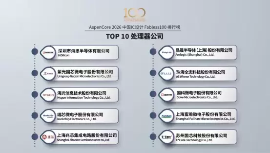 值得一提的是,在2026中国IC领袖峰会期间,由ASPENCORE独家出品的一年一度的《China Fabless 100》榜单正式发布,国科微凭借在超高清视频、智慧视觉、车载电子以及端侧AI等领域的丰富的SoC产品布局,再度荣登TOP10处理器公司榜单。