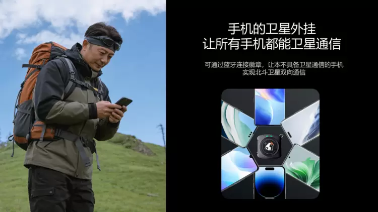 普通手机可直连卫星!海聊卫通北斗卫星徽章W1守护户外安全