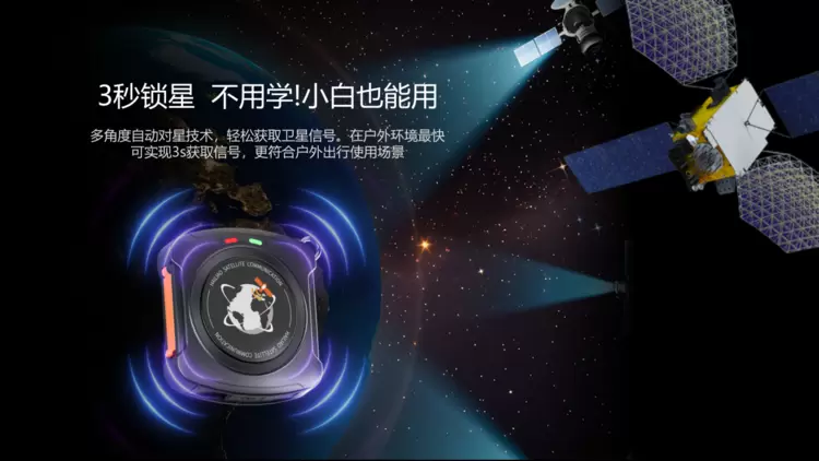 技术创新方面,该设备采用多角度自对星技术,在户外环境最快可实现3s获取信号,更适合徒步、登山、海钓等全户外场景。在野外、荒漠等信号盲区可以稳定收发卫星短信,且消息可直达接收者手机短信,接收者可在手机短信中查看并直接回复,无需额外安装软件。