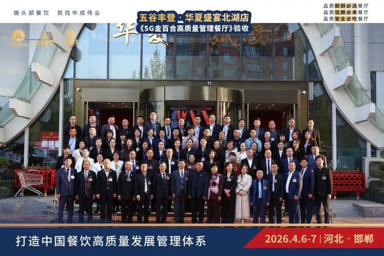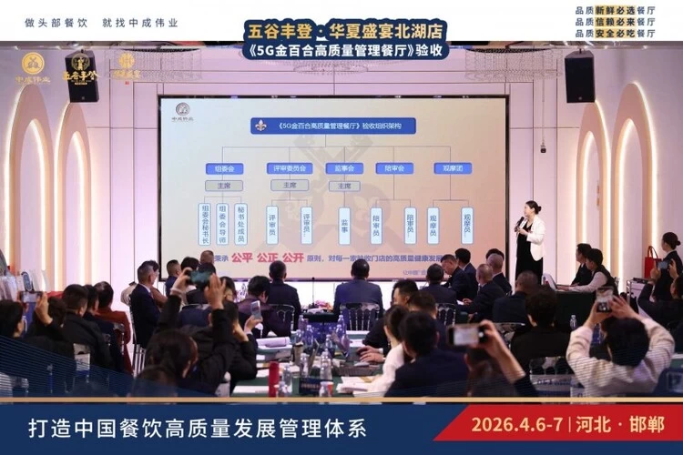2026年4月6日,备受瞩目的五谷丰登·华夏盛宴北湖店《5G金百合高质量管理餐厅》验收大会盛大启幕。这不仅是一场对管理成果的检阅,更是五谷丰登品牌对“品质至上”理念的庄严承诺,是对消费者权益的深 情守护。